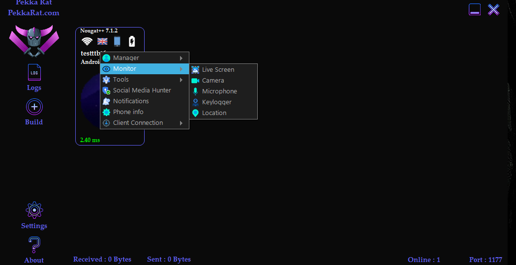 Pekka Rat : is An Android Remote Control Tool Allows You To Control And Monitor Android Phone From Your PC For More Information Please Join Our Telegram Channel